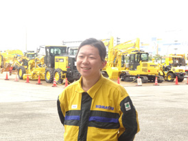子どもの頃から車が好きで、自動車専攻の大学に進学して整備士資格を取得。資格を生かせる職業を探す中でコマツを知りました。世界中で活躍する日本の建設機械メーカー・コマツのメカニックになりたくて応募しました。入社後3年間はメカニックとして建設機械の整備に携わりました。その時の経験を活かし、現在はサービス営業として活動しています。キャリアアップの場が広く開かれているので、将来のために経験を積み上げていきたいです。