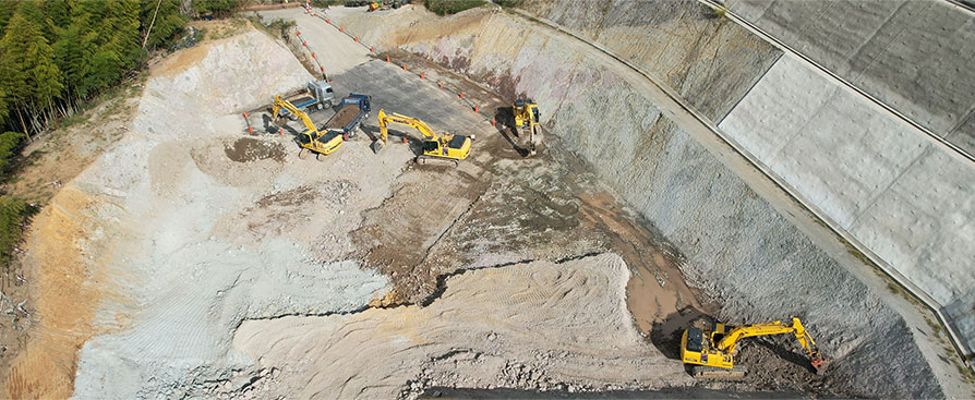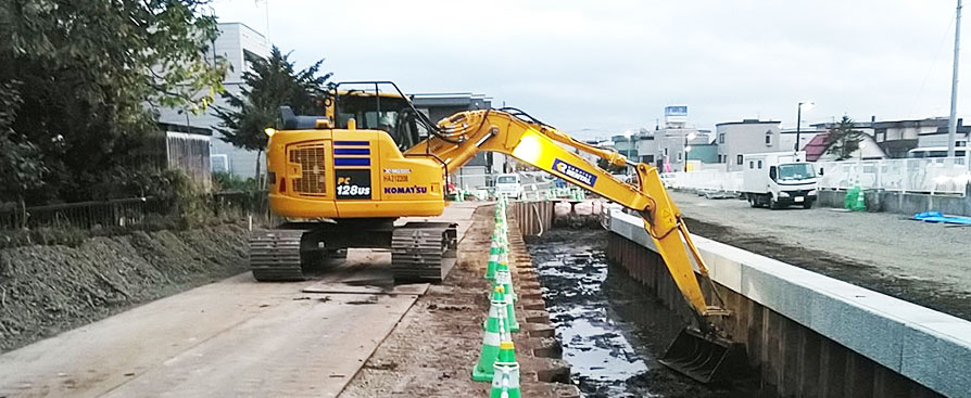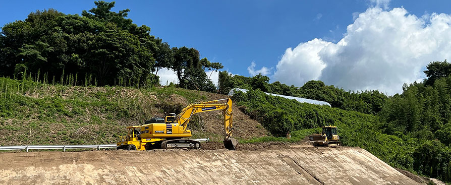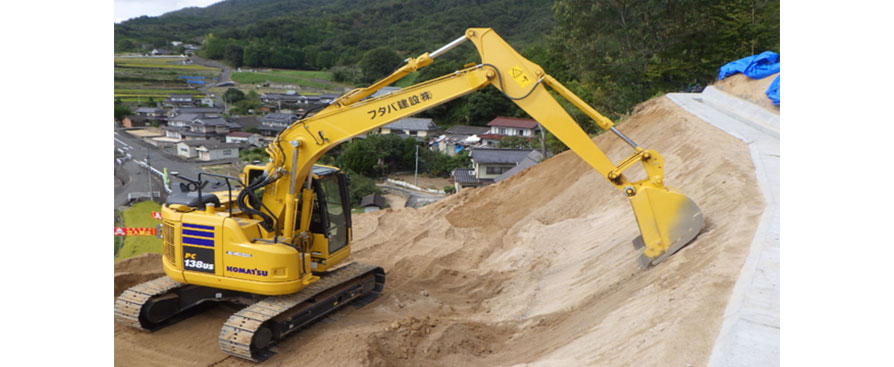 ブロック張り前の法切り作業も過堀りを気にせず施工、オペレーターのストレス軽減に!