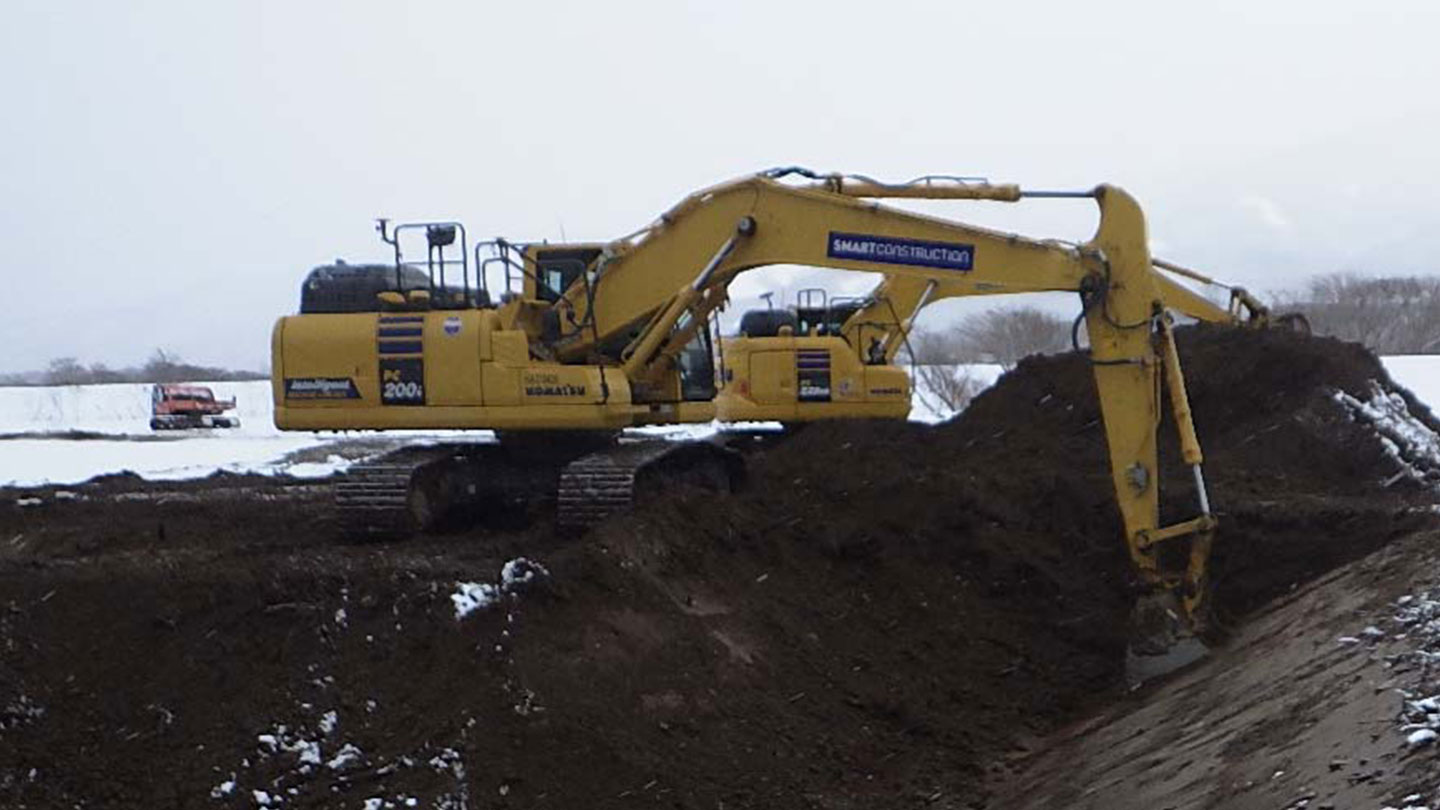 また、ICT建機の導入により、丁張り作業の手間が省け、作業に余裕を持つことができたほか、これまでの現場では工期の都合で土曜出社をしていたところ、今回は平日のみの作業で工期内に完了させることができました。さらに、オペレーターからはPC200iの操作性や性能について高い評価があり、今後もICT施工の現場であれば、より効率的な作業が期待できそうとの意見もありました。今後もICT建機を使用し効率の良い施工をしていきたいと思います。