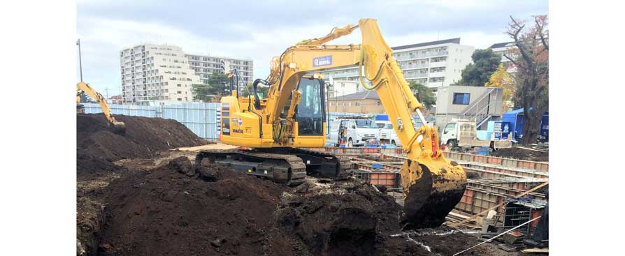 「一言で表すと工期短縮だね!」と、PC128USiを使った感想を河添課長は教えてくれた。詳しく聞くと、「基礎掘削の前に現場を平らに均す工程がありますが、経験2年のオペレータがICT建機を操作して想像以上のスピードで施工してくれたので、大幅に工期が短縮しました。ICT建機の精度の高さについても説明には聞いていましたが、実際に目の当たりにして驚きました。ICT建機は大きな現場で活躍するイメージを持っていましたが、今回導入したことで、小規模の建築基礎の現場でも活躍する事がわかりましたし、スマートコンストラクションで不要なコストが減りました。」と話した。最後に、「建設業界は人手不足で困っています。そんな人たちには是非ICT建機を活用してもらいたいです。扱い慣れた図面でも間違って施工するケアレスミスがあります。ICT建機ではモニタでも刃先位置が表示されますし、制御機能によって掘り過ぎる事もないのでリスクは軽減されます。次の現場への導入も決めています。」と笑顔で教えてくれた。