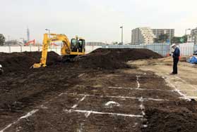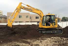 今回の現場は、東京都西東京市の住宅建設に伴う基礎掘削工事。施工するのは東京都の積和建設東東京(株)様。導入の経緯を課長の河添祐作さんに聞いた。「以前からICT建機には興味がありましたが、導入するまでは至っておりませんでした。今回の現場を計画しているときにタイミングよく担当営業から話を聞きました。スマートコンストラクションで現場全体の生産性の向上や精度の高い施工をするICT建機に、0.45m3クラスの油圧ショベルPC128USiがあることを聞き、具体的に導入を考える様になりました。」と教えてくれた。さらに、「今回の現場は現場経験2年のオペレータがおり、熟練のオペレータとのスキルの差を心配していました。ICT建機を導入することで工期の心配がなくなるかもという期待も込めて導入を決めました。」と笑顔で話した。