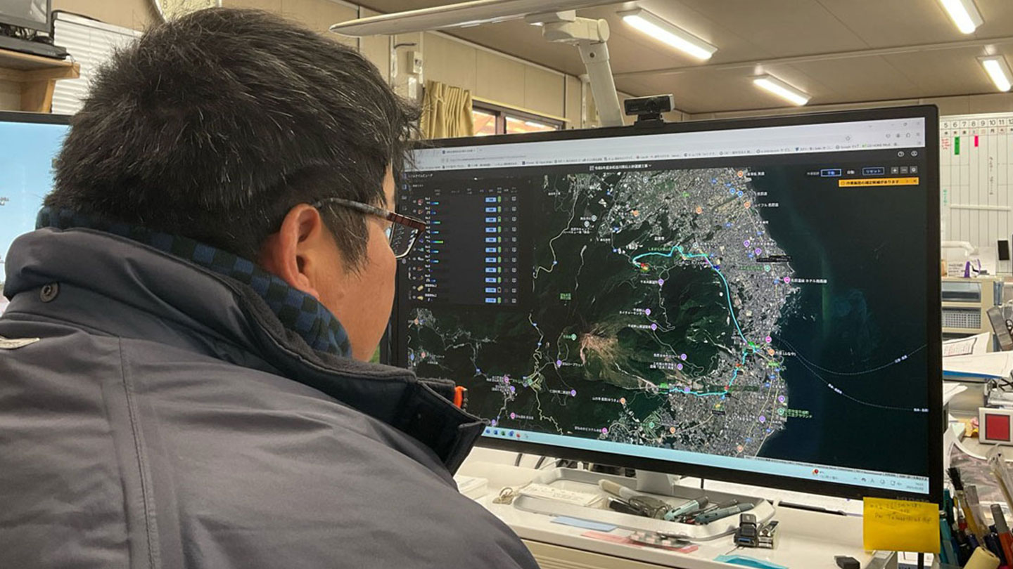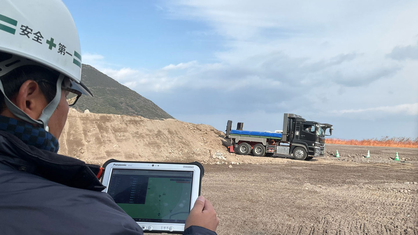 現場内にはダンプトラックがすれ違えない場所があり、接触リスク回避やスムーズな運行を目指して、走行中のダンプトラックをリアルタイムで見られるシステムを探していました。他社に1日走った後の経路を確認できるソフトはありましたが、あくまでもリアルタイムに見られることを重視したのと、土捨て場が2箇所あり経路上に特別支援学校や踏切があったため、安全確保のため設定範囲内に進入するとアラートで知らせる機能もあるSmart Construction Fleetの導入を決めました。