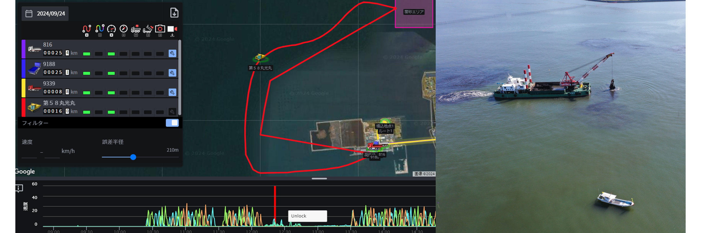 【施工数量】範囲:20,000m² 土量:覆砂7,200m³