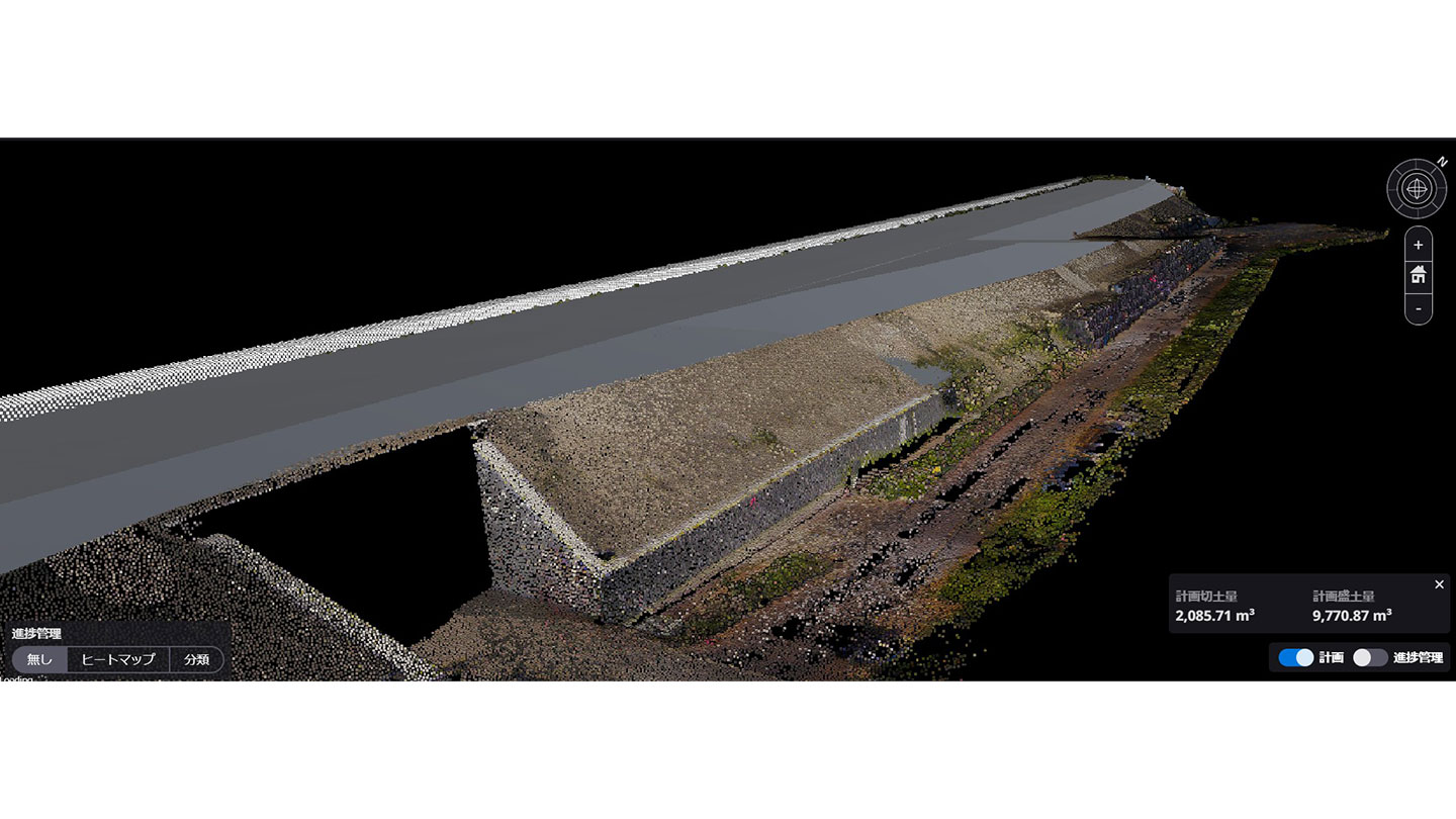 今回の現場は上空に送電線があったため、工事を進める中で、盛土で路床が上がっていくと建機が送電線に近づき、感電する恐れがありました。しかし、送電線をSmart Construction Dashboard上で点群化することで、オペレーターと安全対策ができ、工期短縮や業務効率化はもちろん、安全性向上という大きなメリットを実感することができました。