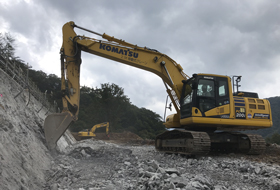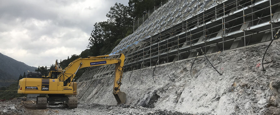 ■■■ 現場詳細 ■■■ 岐阜県 揖斐川町塚 第維工道災1-H29号道路災害復旧工事 地滑りで崩れかけた山の土砂を取り除く 【施工土量】 排土工:120,000m3 掘削法面整形工:8,000m2 【ソリューション】 スマートコンストラクションアプリ ■■■ 導入経緯 ■■■ 西濃建設(株)土木工事部 蜂屋斉さん この現場は、岐阜県のICT活用工事モデル現場で、当社がICT活用工事に挑戦するきっかけとなりました。複数の業者から提案を頂きましたが、マシンコントロールのICT建機や、スマートコンストラクションアプリによる施工管理などが決め手となり、スマートコンストラクションを導入しました。また、繁忙期によるオペレータ不足で、現場の作業進捗が遅れていましたので、掘削初心者である当社の職員が、丁張レスで手元作業員が不要となるICT建機で施工を行う事になりました。