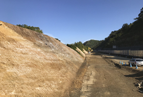 ■■ 導入効果 ■■ 須工ときわ(株) オペレータ 小松宝生さん ICT建機は楽で良い!若手もベテランも建機での法面整形時は、丁張と整形箇所の角度を何度も何度も確認して整形します。切土の整形は失敗出来ませんからね。しかし、コマツのICT建機はモニタが大きくて見やすく、マシンガイダンスとマシンコントロールの切替がボタン1つで簡単にでき、荒掘削から仕上げ整形作業まで自分の思うままに操作ができるので本当に楽でした。1日に数十回乗り降りして行う施工確認作業が数回で済むようになっただけでも楽でしたよ。 須工ときわ(株) 工事長 福富孔彦さん ICT建機から自動で送られてくる施工情報が翌日には、スマートコンストラクションアプリに施工実績として反映されているので、施工進捗の出来形を事務所でも確認できて良かったです。ICT建機も施工データ面で制御されるので高速道路側構造物への接触事故を起こすリスクが無くなリ、安心して作業できたので安全作業に繋がりました。