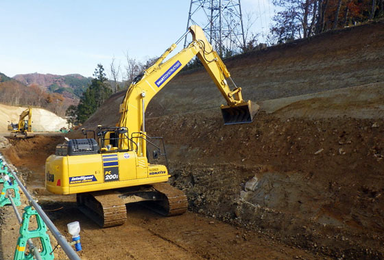 ■■現場詳細■■ 宮城県(市)湯元上原線道路改良工事 国道286号バイパスの整備事業の一環で道路を拡幅し改良する工事 【施工延長】560m 【施工土量】切土55,160m³ 盛土50m³ 【ソリューション】 スマートコンストラクションアプリ ドローン測量 レーザースキャナ測量 ■■導入経緯■■ (株)深松組 工事長 相澤達哉さん 当社がコマツICT建機を導入して施工した現場は、10現場を超えます。私が過去に担当した現場でも4tコンバインドローラに転圧管理システムを装着して施工を行い、ICT建機の精度や使い易さは理解していました。今回の現場は、仙台市のICTモデル工事の現場でしたので、ICT活用工事の進め方や発注者との協議など若干不安に感じていましたが、ICT活用工事に準拠し、多くの実績やノウハウがあるスマートコンストラクションなら安心できると思い導入を決めました。