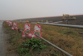 社訓・企業理念「一人一人が情熱をもって誇れる企業として成長・発展を図り、技を磨き・精進し、和を大切に、夢を持って達成する」 現場に女性用休憩室・トイレを設置、単管バリケードもキティーちゃんにするなど、若手・女性活躍にハード面・精神面で力を入れている。そして今回ICT建機を現場に導入した。