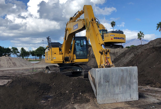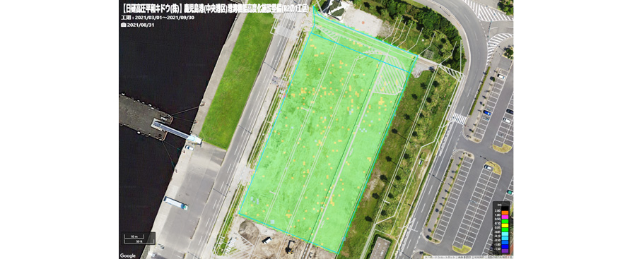 ■■現場詳細■■ 鹿児島県鹿児島市中央港新町 鹿児島港(中央港区)港湾機能高度化施設整備(R2の1工区) バスの大型駐車場整備(道路改良)工事 【施工範囲】 面積 6,000m² 【施工土量】 掘削 1,930m³ 【ソリューション】 スマートコンストラクションアプリ SMART CONSTRUCTION Retrofit 【使用建機】PC128USi/PC200 ■■導入経緯■■ 日研高圧平和キドウ(株) 工事係長 橋口信親さん 今回の現場は、特記仕様書にICT施工の記載があり、面積も広かったため、丁張り設置の手間や検測作業を考えるとICT建機を使用した方が良いと思いました。以前から米盛建設グループではスマートコンストラクションを導入していて、ICT活用工事の全てのプロセスに対応していることと、導入した現場担当者からの評判も良かったので、当現場でも導入を決めました。
