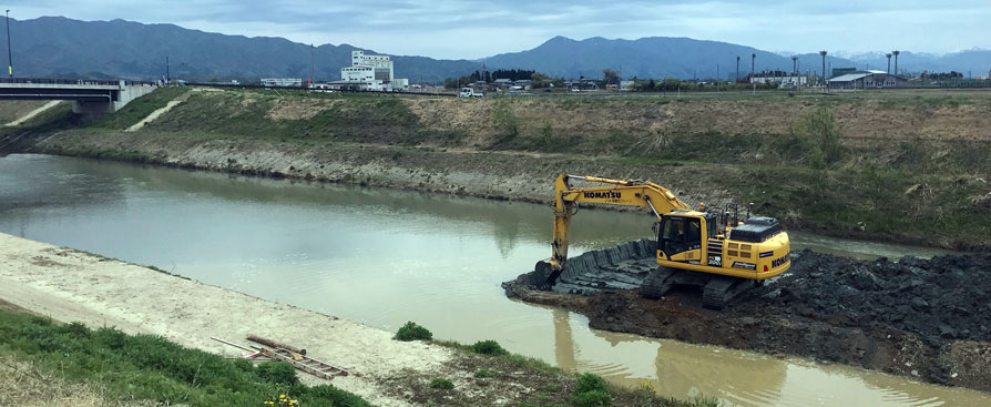 ■■現場詳細■■ 新潟県阿賀野市 阿賀野市を流れる安野川の中洲に堆積した土砂を撤去する工事 【施工延長】240m 【施工土量】切土 11,110m³ 【ソリューション】 スマートコンストラクションアプリ 【ICT建機】PC200i ■■導入経緯■■ (株)ハナザワ 土木部 中村大さん もともと発注者から、「ICT技術を活用すれば、進捗状況や出来形が見える化できるみたいだから、ICT施工に挑戦してみたら?」と勧められていたのですが、未経験のためICT施工について情報不足で悩んでいたところ、担当営業からスマートコンストラクションの説明を受けました。やってみたいけど現場で採算が合うのかという不安があり躊躇していましたが、積算をシュミレーションした比較表での説明もあり、採算が合うと分かりました。コマツの実績が多いことは聞いてましたし、「やはりこれからの時代はICTだ!試しにやってみよう!」という思いから決断しました。