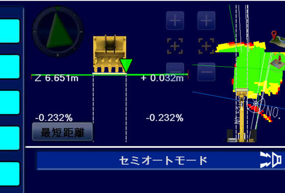 ■■導入効果■■ (株)ハナザワ 土木部 中村大さん 川の中を掘削するとき、掘りはじめは川底が確認できますが、掘り進めていくうちに濁って水中が見えなくなってしまうので、掘削深さを管理するのが大変です。しかしICT施工であれば、濁った水中部でも、運転席でモニタをみればどこまで掘ったらよいか一目で分かり、更にどこまで施工できたか色で判別できるのでとても便利でした。また今回の現場は、堆積土砂を土質毎に3層にわけて搬出する必要があり、本来であれば各層を掘り終える度に丁張りを掛けなおさなければなりませんでしたが、3次元設計データを使えば丁張りなしで連続して掘削作業ができるようになりました。丁張りをかける間は掘削作業は止まりますし、ICT施工でなければこんなに早く終わらなかったと思います。施工進捗はダンプの配車にも影響するので、掘削土量や進捗が把握できるスマートコンストラクションアプリの画面は毎日見ていました。未経験で不安もありましたが、全てをサポートしてもらえたのですぐに不安はなくなりました。今回のような現場では間違いなくICT施工をお勧めしたいです。 「河床掘削といったらICT施工でしょ!」という時代に間違いなくなっていくと思います。