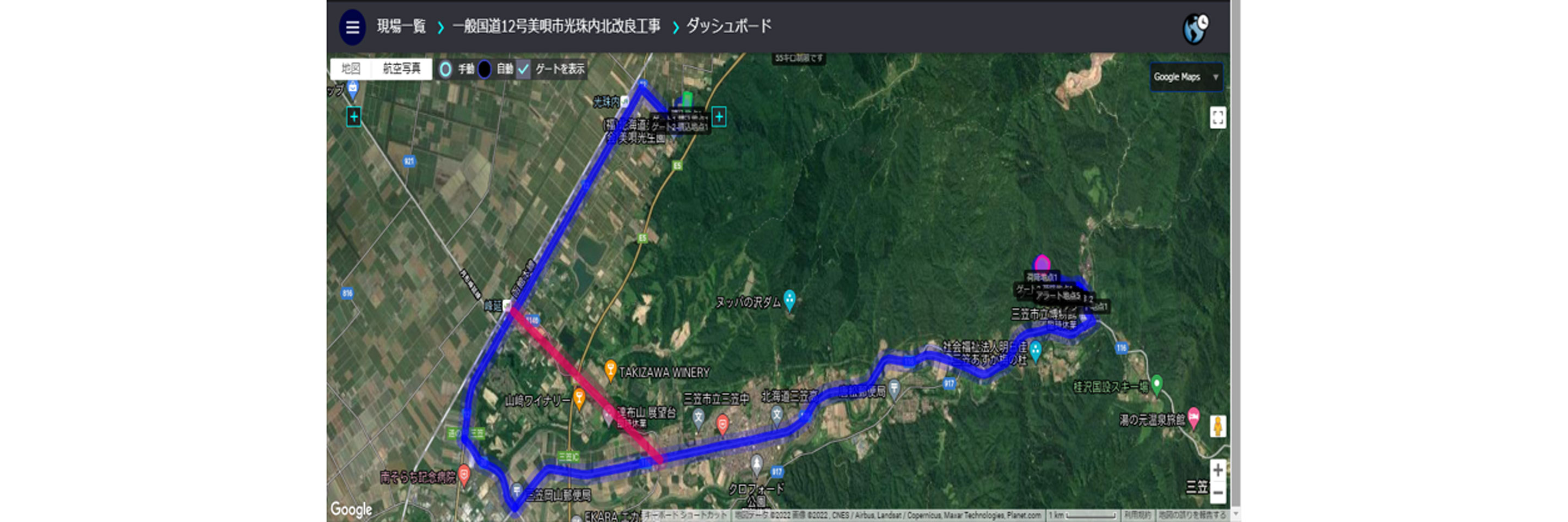 当社ではこれまでもICT建機を多数導入してきました。今回の現場は国道12号峰延道路事業の一環として行う道路改良工事です。現場では運搬経路の安全確保が重要になるため、ダンプの運行管理ができると担当営業から聞き、 Smart Construction Fleetを導入しました。また、日々の進捗管理をすることで工期短縮、人員の削減につながるという話を聞き、Smart Construction Droneの導入に至りました。