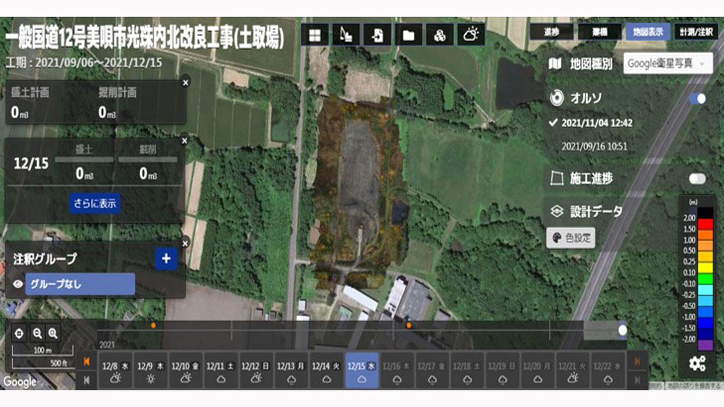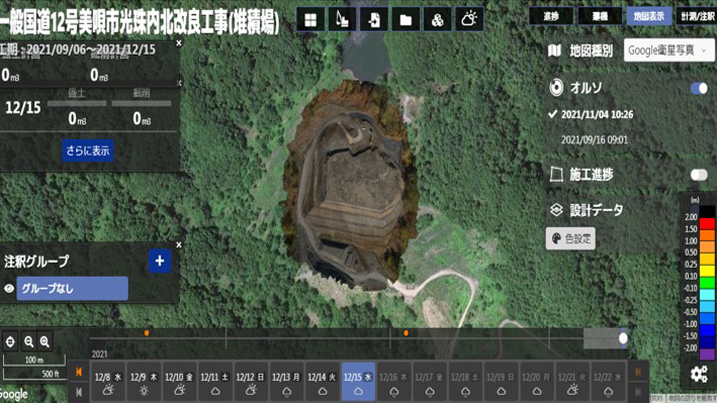 今回、Smart Construction Fleetを導入したことによって、ダンプの位置をリアルタイムに確認することができるため、運搬時の安全性を官公庁へ証明することができました。また、事務所内にいてパソコン一つで常にダンプの稼働状況を把握し、管理することができたのも嬉しいポイントでした。そして、Smart Construction Droneでは人員削減や測量日数の大幅削減を実現することができ、工期短縮にもつながりとても満足しています。今後も積極的に活用していきたいソリューションになりました。
