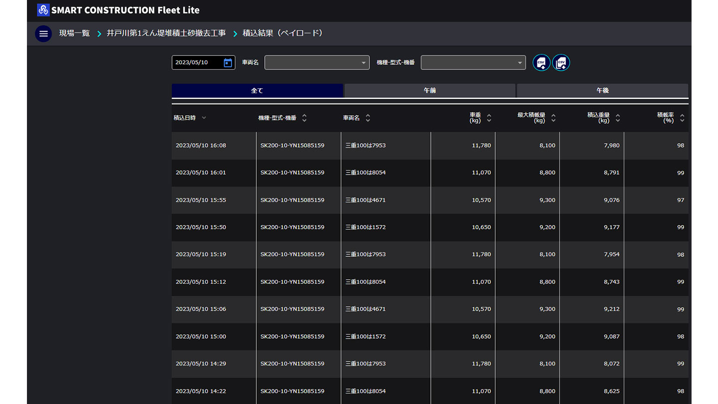 レトロフィット装着機では主に掘削を行いました。仮置き場となる場所を事前にドローン測量し、土を台形に置いて測量を行い、あらかじめ仮置き場に何立米の土が置けるか算出しました。そして、全ての現場でペイロードメーターを活用し1台1台ダンプに積んだ土量を集計して毎日の積載管理も行いました。さらに、週に1度は仮置き場の土量を測量し、残量を管理しています。やりすぎかもしれませんが、自分たちのスキルアップのために日々勉強しています。