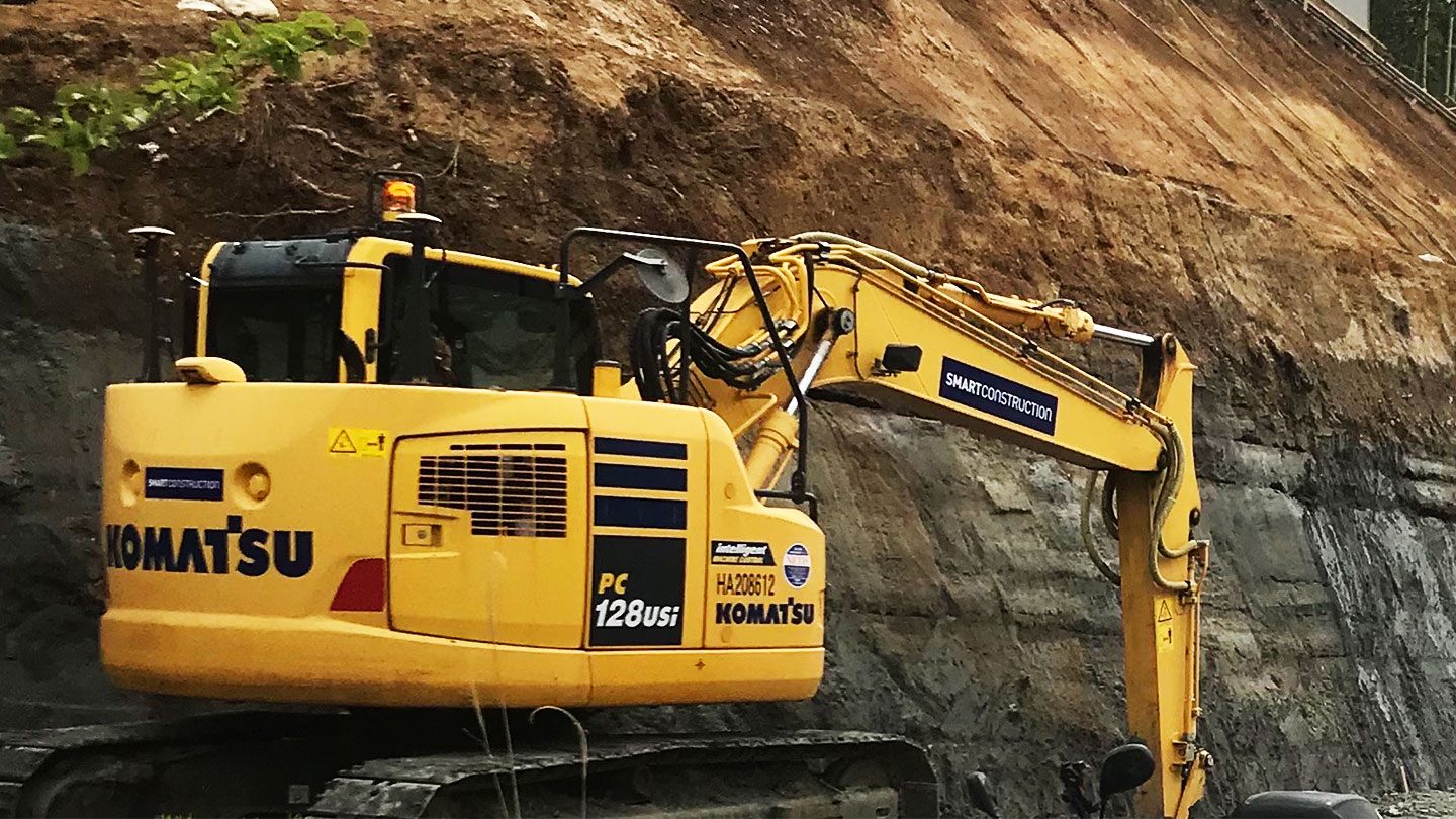 ICT建機の導入によって、当初の期待通り丁張り削減による大幅な工数削減が実現し、1か月ほど日数が短縮できました。また、今回の現場は急傾斜だったので丁張り作業自体にもリスクがあったのですが、丁張りレスになったことで滑落の危険性がなくなり、現場の安全性も向上しました。事務所にいながら現場を管理できるSmart Construction Dashboardについては、うまく活用できるか不安だったのですが、導入前の使い方の指導が非常にわかりやすく、問題なく使用することができました。