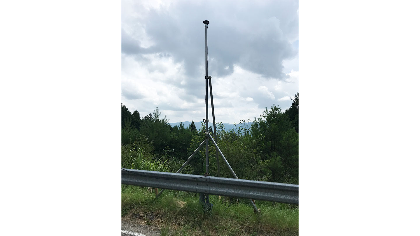 林道の工事で衛星の入らない現場でしたが、単管パイプを利用し、固定局を高い位置に設置して使用することを決めました。