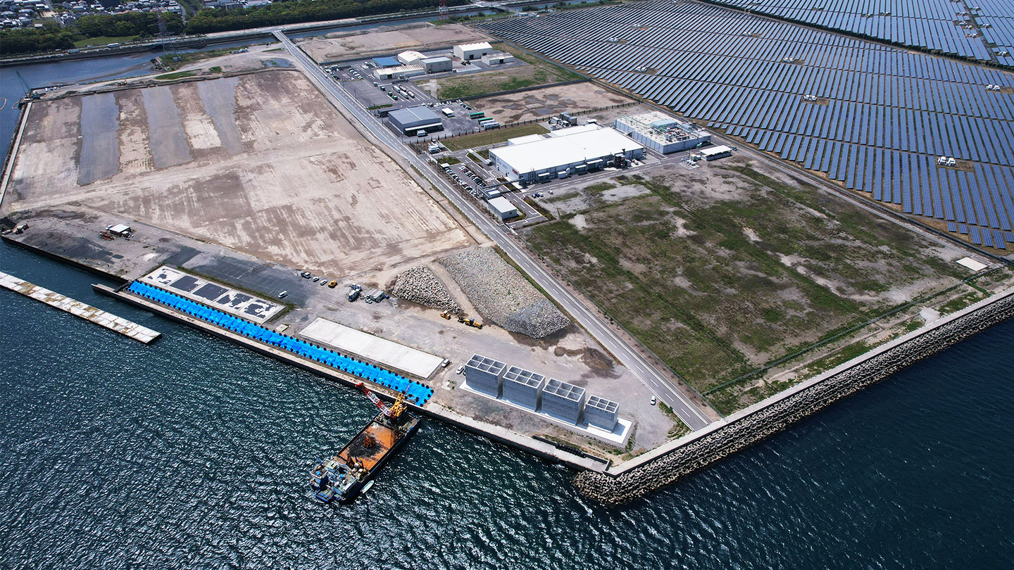 増大する大分港の貨物需要に伴い、大型化する運搬船に対応するための護岸整備工事