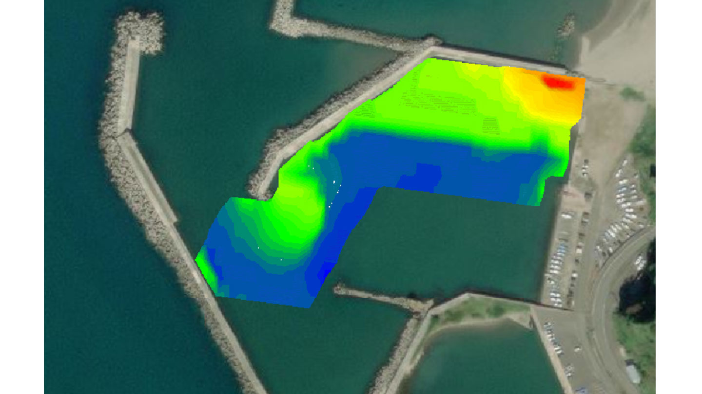 そして施工後の測量においても、潮位から目視で確認を行っていたので、人手がかかり、正確な情報を得ることができない等、様々な問題がありました。