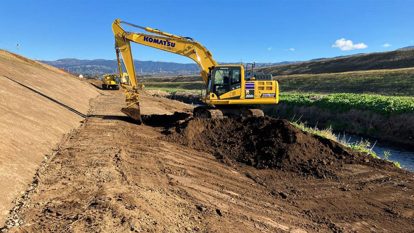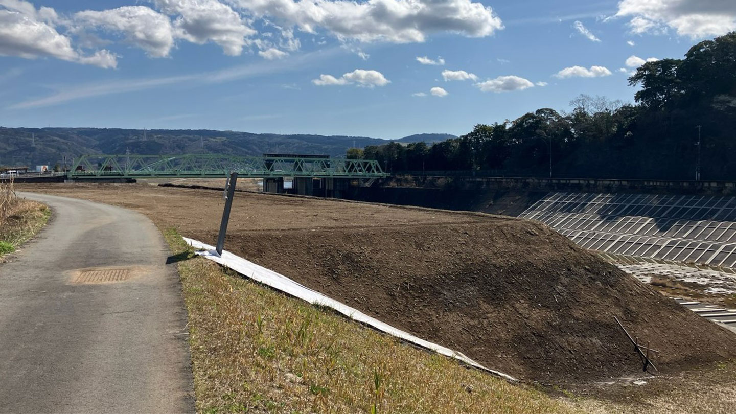 この現場は、河道掘削で除去した土砂を別の場所へ運搬し盛土します。そこで運搬先での盛土量を素早く正確に知りたいと考え、Smart Construction Quick3Dに専用後付けGNSS受信機のviDoc RTK roverを使用して測量しました。トータルステーションだと、荒でも土を台形に整形し、基準線を張って測点毎に光波で断面を測量するので労力を要します。Smart Construction Quick3D+viDoc RTK roverなら、運んできた土を適当に積み上げた状態で撮影し、短時間で3次元データが取得でき、Smart Construction Dashboardと連携することで土量算出が可能なので、計測プロセスの短縮化を図ることができます。 撮りたい時に自分のペースですぐに使え、ハンディで撮影ができ、簡単に精度の高いデータが取得できるから非常に楽です。また進捗管理や、工程管理のエビデンスとしても活用ができます。次は構造物を施工する際にSmart Construction Quick3D+viDoc RTK roverを活用してみたいです。色々な使い方で幅が広がると思うので、会社に1つあるととても便利だと思います。