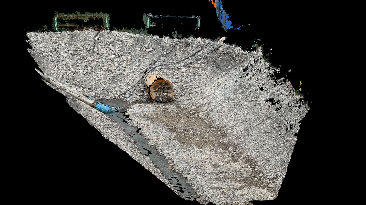 今回の施工では、管路を埋めていく作業があり、5mの管路を3本ずつ埋めていくのですが、掘削しては埋めて、また隣を掘削してと5~6回繰り返します。3次元で出来形を取得するとなると、ドローンやレーザースキャナーの測量費用がかさみます。