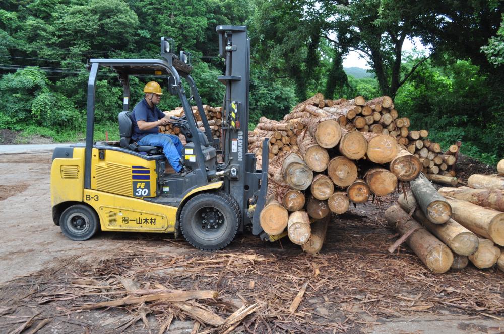 当初心配していた力不足の点も、エンジン式と比べても遜色なく、積み上げられた原木をフォークで押しながらすくい取る、力が必要な作業も十分こなせます。普段乗車するオペレータからは、振動が少なく音も小さいので『疲れにくい』『安定感がある』『メンテが楽』という声も聞いてます」と語った。