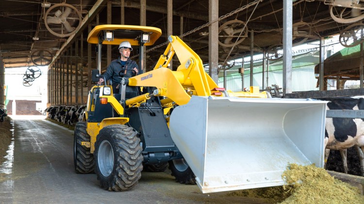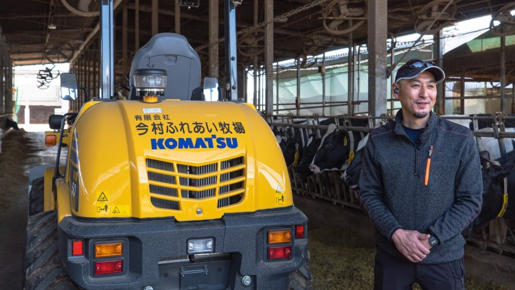 福岡県久留米市で酪農を営む今村ふれあい牧場。3代続くこの牧場では牛が自由に歩き回れるフリーバーン牛舎を採用し、親牛250頭と子牛100頭が広々とした牛舎で伸び伸び過ごしている。 牧場では農畜産仕様のミニホイールローダーWA50-8を使用し、主に堆肥処理や牛舎の清掃を行っている。「ミニホイールローダーを使えば当然作業効率が上がりますので、生産性を上げるために導入しました。」と語るのは代表取締役の今村浩星氏。