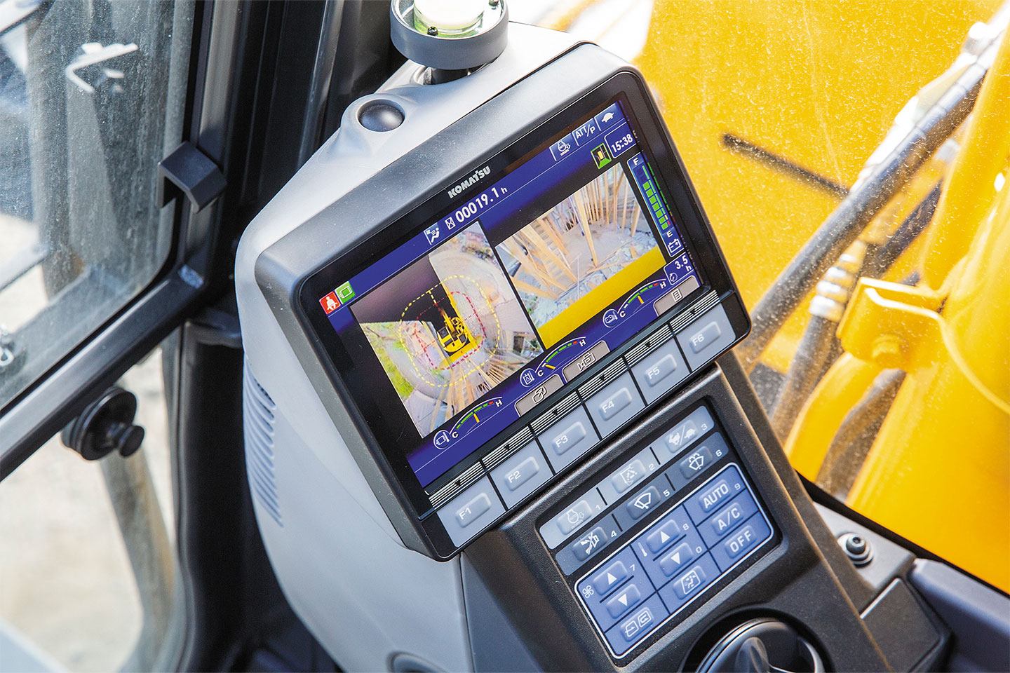 また、事業本部建設解体部工事グループの安田智哉氏は「車体の左右と後方にカメラが設置されていて、機体周囲の安全をモニターで確認することができます。また、人を検知した場合には自動的に発進を制御します。解体現場は危険が伴うので、安全装備が充実していると安心ですね」と、PC138E-11に搭載されているKomVision人検知衝突軽減システムを高く評価する。