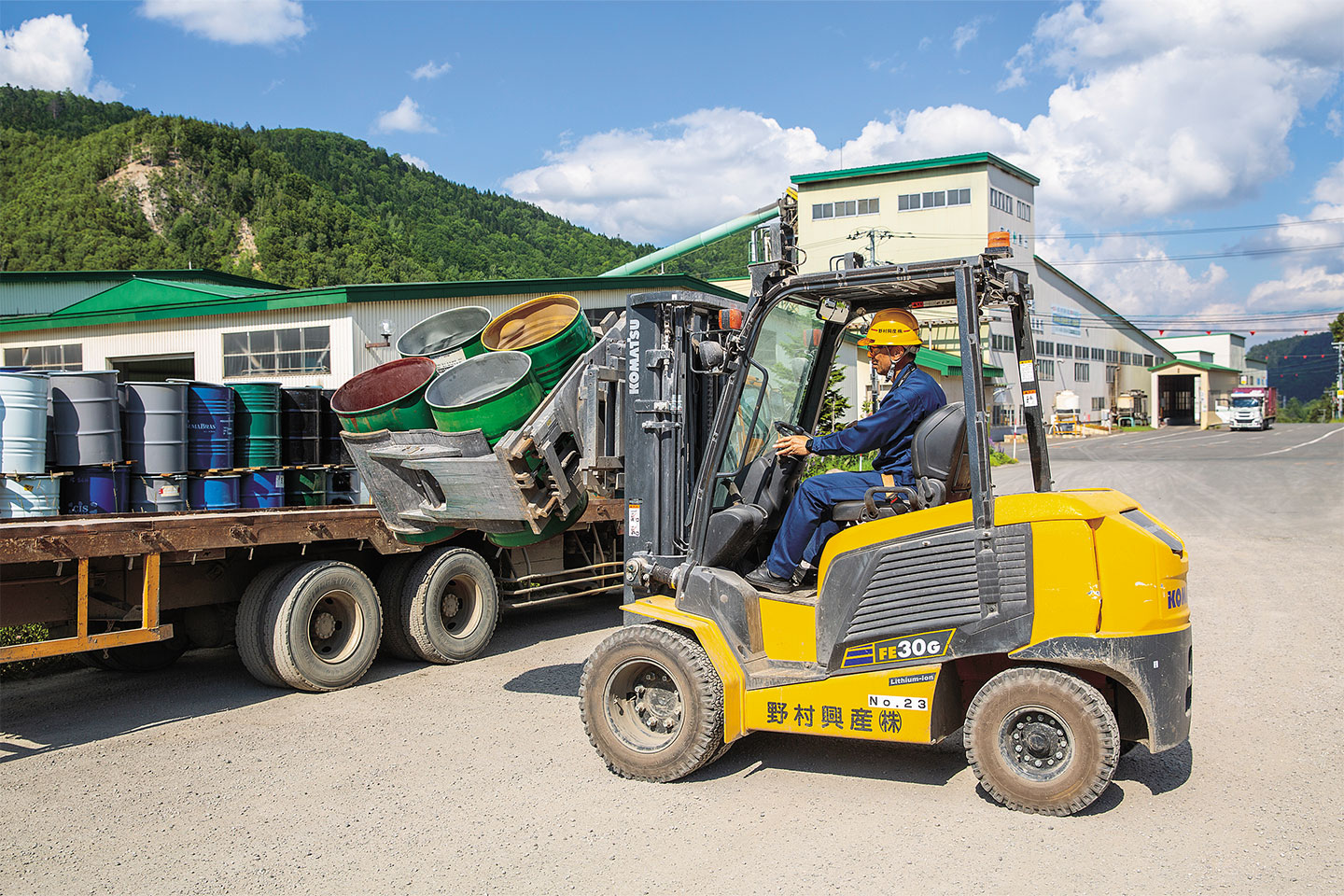 機械の管理には「Komtrax」を活用している。Komtraxはインターネットを介して各機械の稼働状況を確認できるシステムで、工場内や離れた拠点の機械の一括管理が可能だ。導入効果を数値化することができ、機械導入の際の目安になるため大いに役立っているという。「現在、フォークリフトだけでなく、油圧ショベルのPC200やPC138US、ホイールローダーのWA200など、さまざまなコマツの建機が稼働し、それぞれの稼働状況を管理しています。その状況を踏まえ、今後はフォークリフトだけでなく、可能であればそのほかの建機に関しても電動化を検討していきたいと考えています」と、森谷課長は語る。
