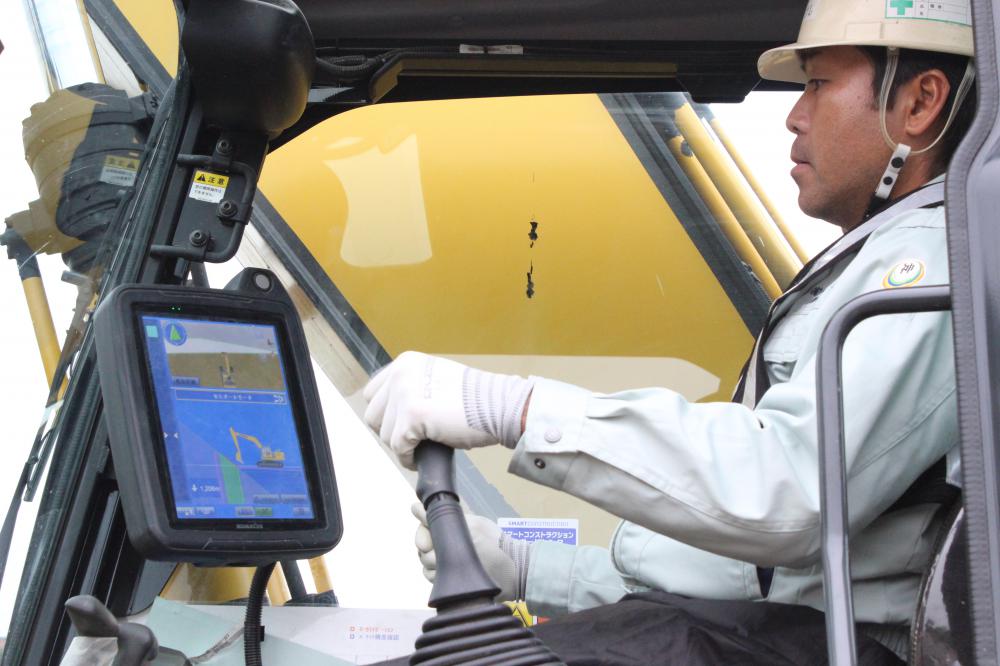 神谷産業では多くのコマツの建機を導入しているが、とりわけICTの機能の備わった機種を多く保有している点が特徴だ。「かねてより全国で開かれる建設機械の展示会に積極的に参加してきました。そのため、ICT建機を実際に見る機会も早かったと思います。最初に導入したのは、ICT機器を機械に後付けしたものでした」。現在はICT機器が内蔵されたD37PXIやD65EXIマシンコントロールブルドーザーを導入している。特徴としては、施工した履歴が自動で数値化・見える化される点。この機能は使用者だけでなく発注元としても貴重で、作業の進捗状況など幅広い情報を共有できる。 またICT建機は他にも油圧ショベル PC200I-10などを複数保有。この機械では、決められた掘削面の高さを自動で制御してくれる。現場ではオペレータが慣れた手つきでモニターを見ながら丁張なしで法面整形をすばやく正確に行っていた。「2010年にはICT機能の建機を導入していました。ここまで早く実用化できたのは業界でもトップクラスの早さだったと思います」と神谷社長。