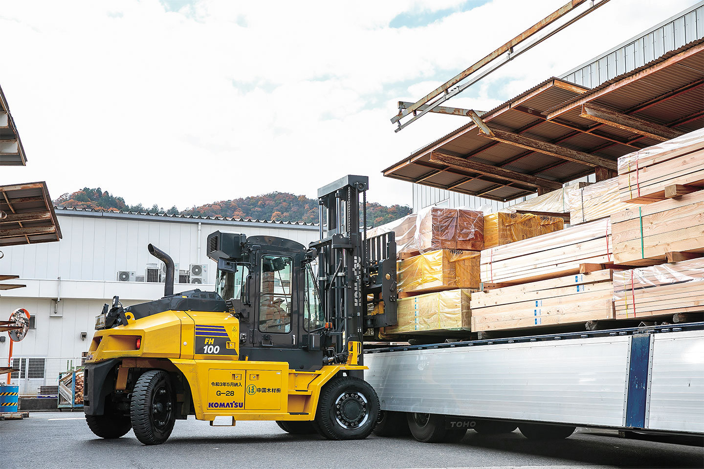 現在、米国から輸入する米松丸太の製材拠点は、広島県呉市の本社工場と、茨城県神栖市の鹿島事業所の2カ所。また、国産材の取り組みも強化しており、6つの製材拠点を通じて国産材の活用を推進している。さらに同社は、木材産業の循環型経済を目指し、国内に約11,000haの自社林を管理するとともに、植林用の杉苗の生産も行っている。