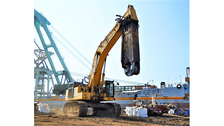 世界最大クラスの剪断用アタッチメントで大型化する船舶の解体に挑む