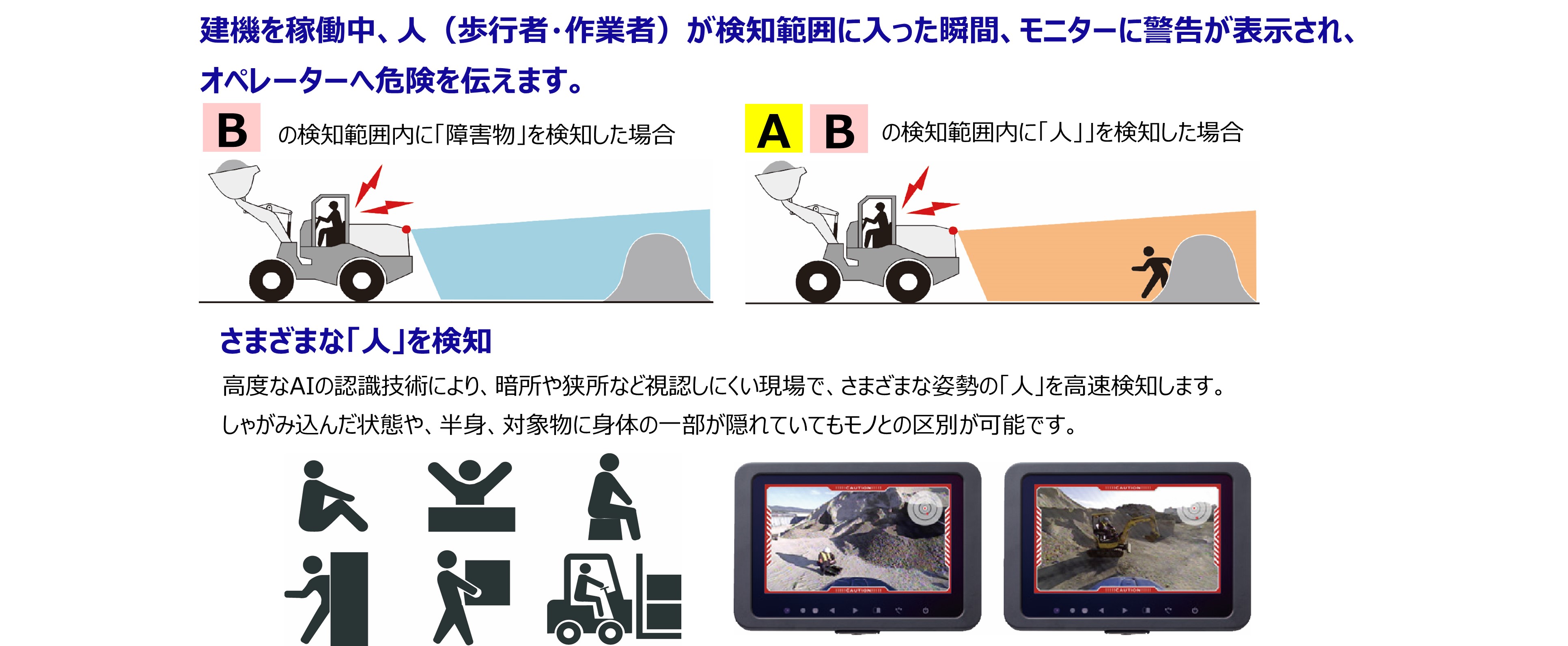 ・様々な姿勢の歩行者・作業者を高速検知