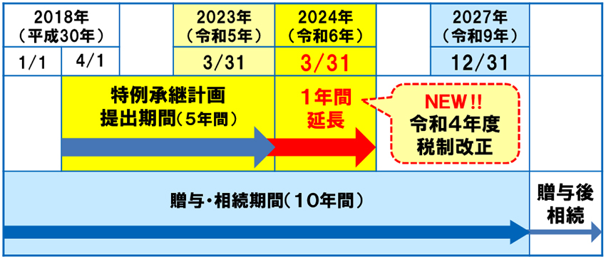 あります。 法人版事業承継税制(特例措置)適用の前提となる都道府県知事への「特例承継計画」の提出期限が、2024年3月31日まで1年間延長される予定です。 ■法人版事業承継税制(特例措置)の適用までの流れ