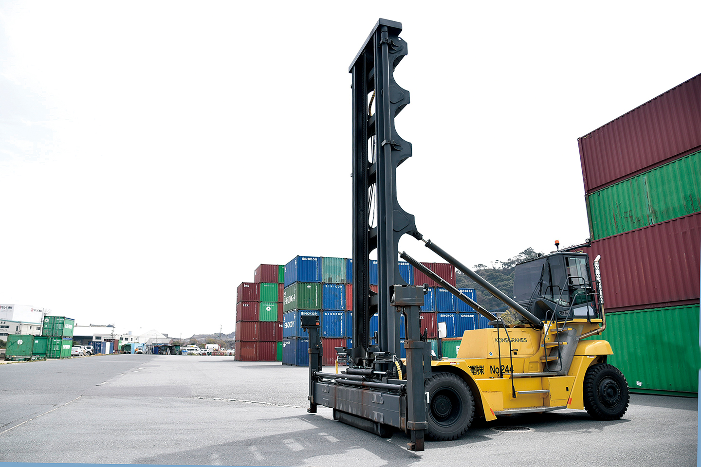 同社では北九州市門司区を中心に合計で14カ所の倉庫を構えている。倉庫で活躍する荷役機械は71台にも上る。「コマツの機械は22台あります。問題が起きてもスピーディーに対応し、改善策をともに考えてくれるので、パートナーとして信頼しています。今後も、安全な作業をサポートする信頼性の高い機械を開発してほしいです」と野畑和彦取締役はコマツに期待を寄せる。