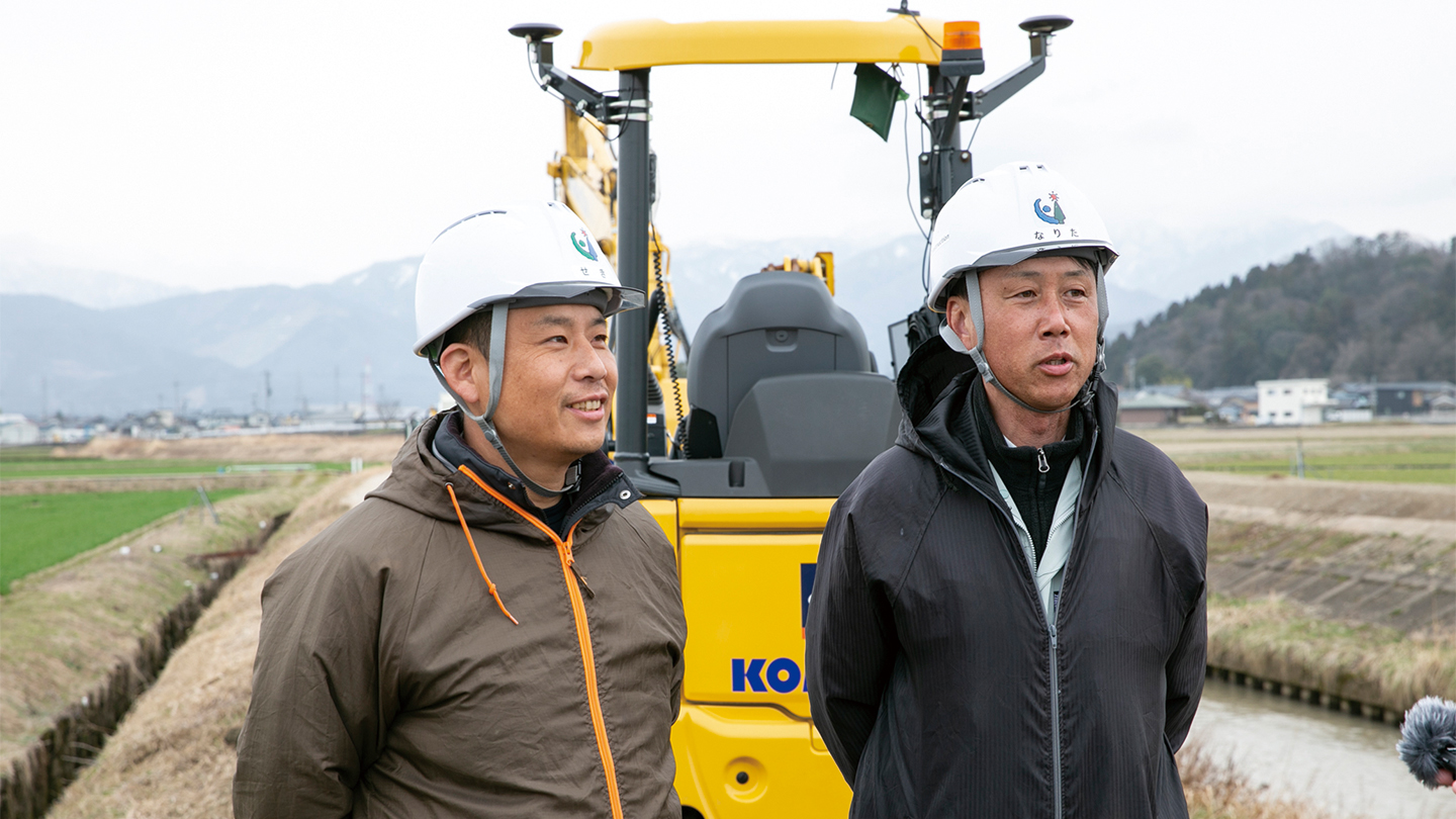 国土交通省が進めるICT活用工事受注をきっかけに、ICT施工に着手。PC200iを導入し社内への浸透を図った。現在では、後付けのレトロフィット装着機も保有している。若手作業員はPC200iを操作し、熟練作業員はレトロフィット機を使うなど、ICT建機とオペレーターのバランスに配慮し、業務の効率化を推進している。今後の受注状況を考慮し、ICT建機の拡充を図る考えだ。