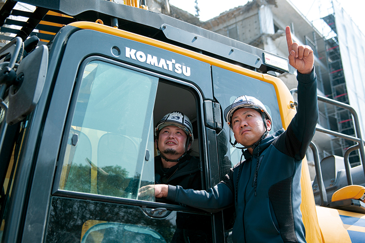 同社とコマツとは強いパートナーシップで結ばれており、建機の開発を共同で行う側面もある。これまでには、中層建物の解体に適した作業性を実現する「PC228USLC-11 解体2ピースブーム仕様」などが開発されていて、今回取材に伺った現場でも、共同開発による建機が使用されていた。