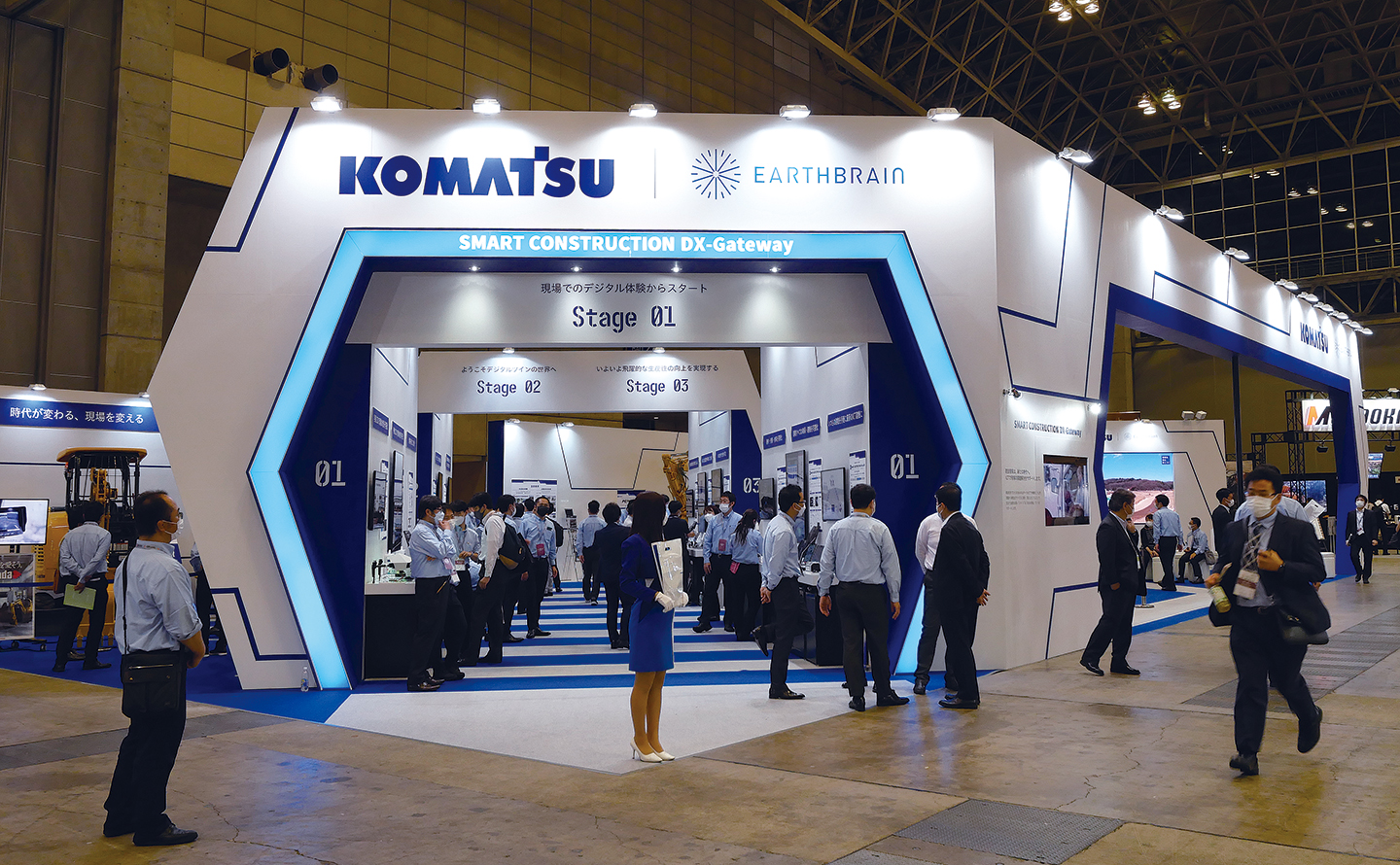 会期中は、この技術の開発担当である株式会社EARTHBRAIN DXセンターの川副和人氏が、小規模土工の現場を模した展示においてSmart Construction Quick3Dでの作業をデモンストレーションした。