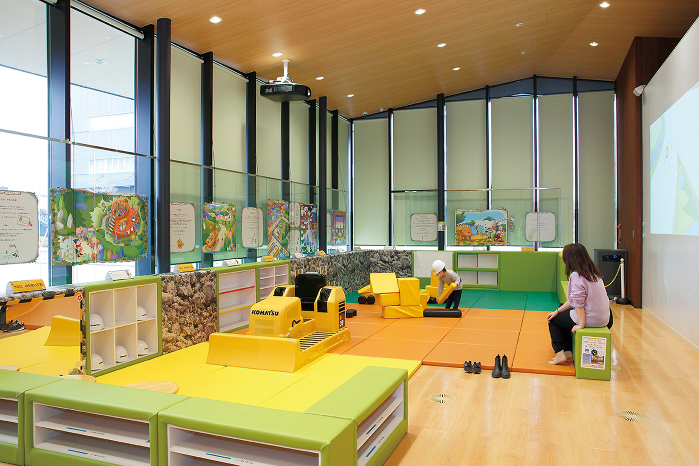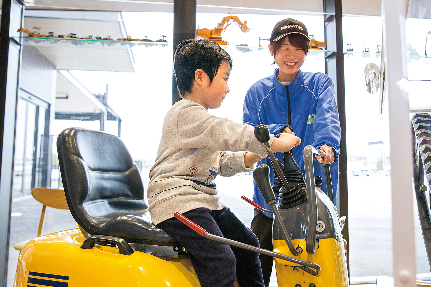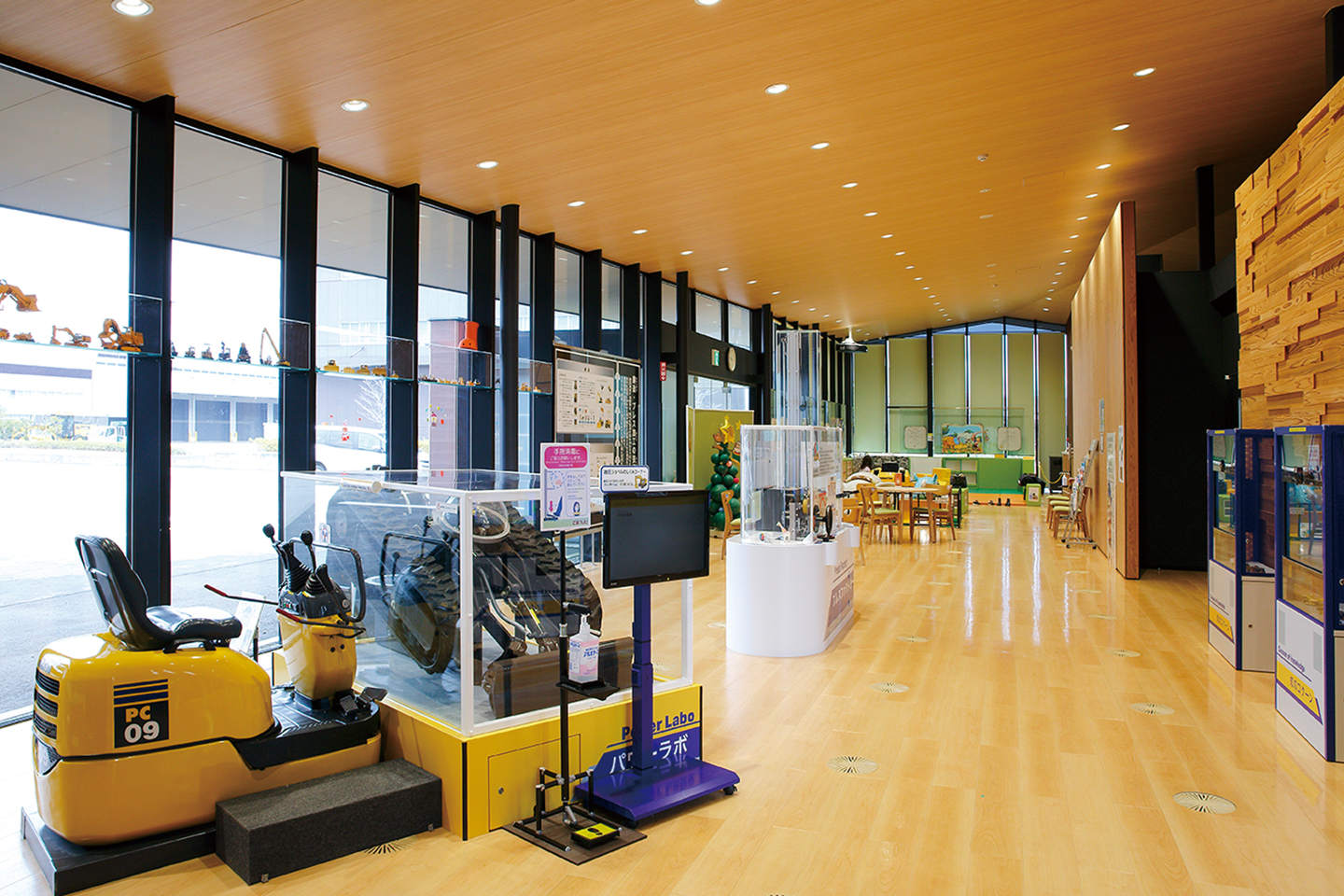小さなお子さま連れのご家族に楽しく過ごしていただくエリアです。コマツのものづくりの原点となったプレス加工の体験や、オリジナルキャラクターを用いたキッズコーナーなどがあります。