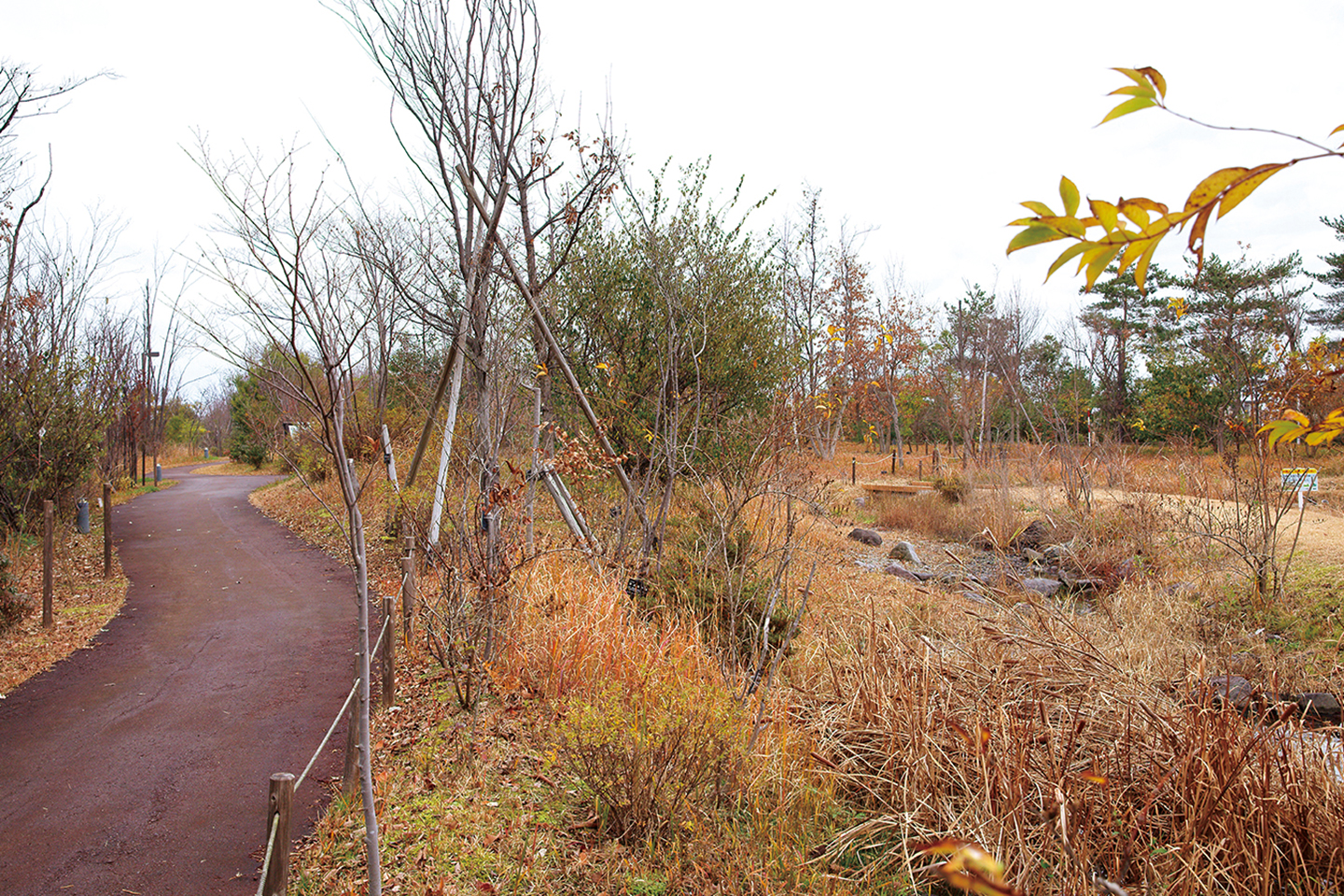 加賀の自然を再現した里山です。中央に小川が流れ、さまざまな水中生物や昆虫・鳥などが集まり、多様な動植物を観察することができます。地元の方々の散歩コースとしても親しまれています。