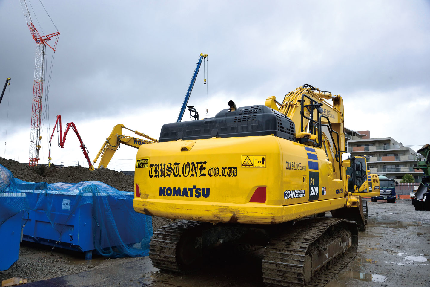 トラスト・ワンでは以前から、業務の効率化による省エネやCO₂の排出量削減を実現するICT建機の使用に積極的で、清水建設から相談を受けた際にICT建機の建築現場での活用を提案した。