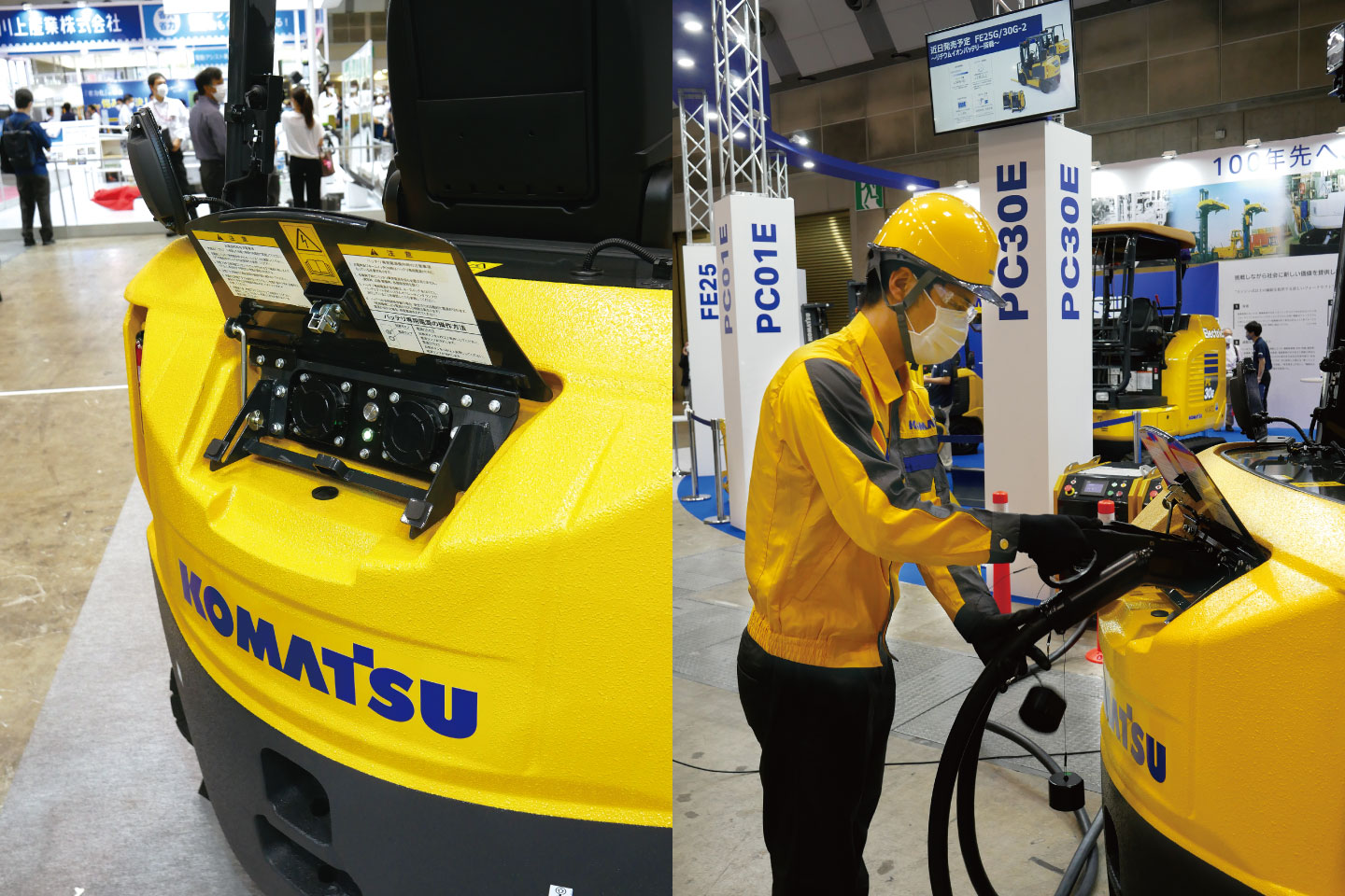今回の展示会の来場者も、1時間未満で充電できてしまうこの2口充電のメカニズムに驚いていた。充電時間と稼働時間は業務効率に直結することから、やはり感心が高いようだ。