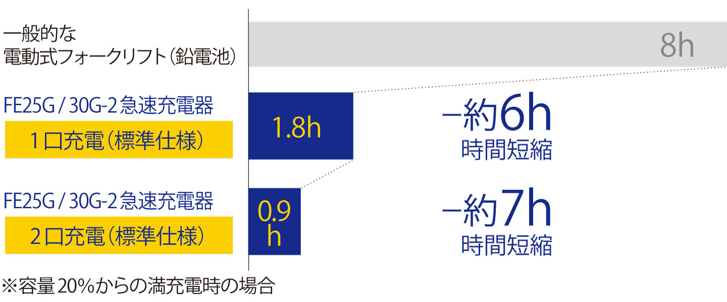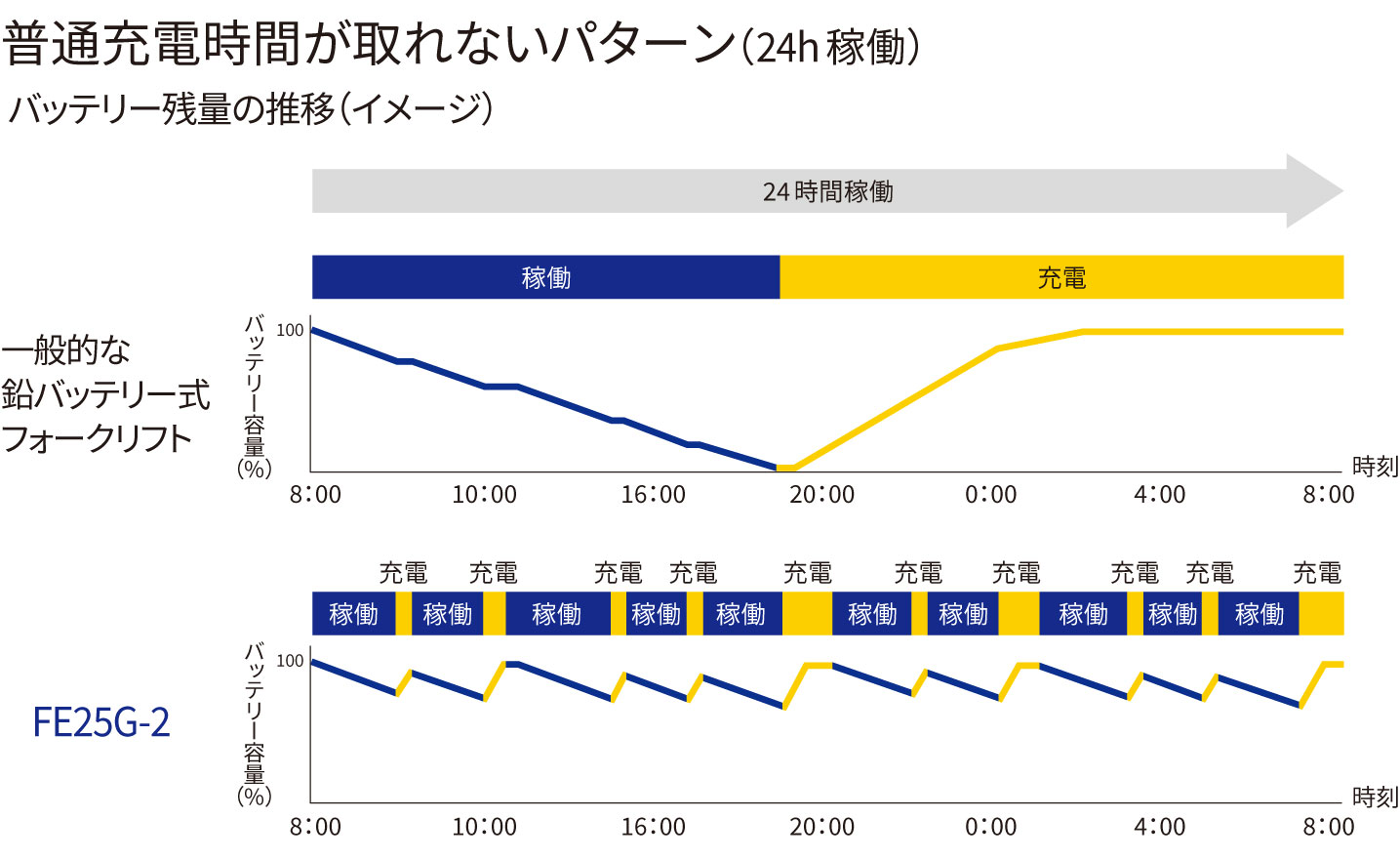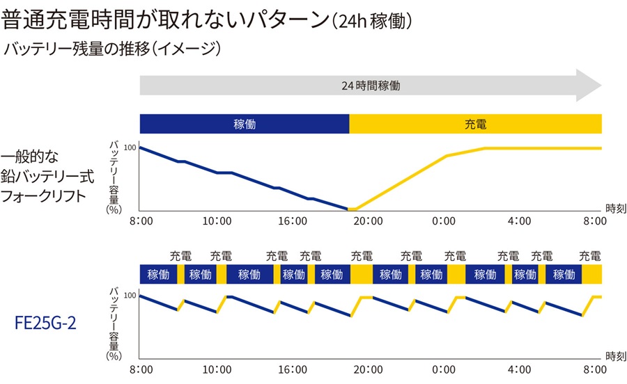 ※FE 25G -2と従来2.5t鉛バッテリー製品のバッテリー容量を比較した場合