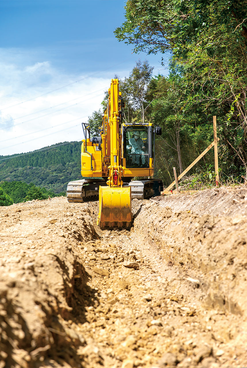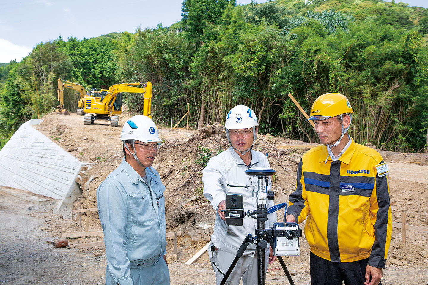 ICT建機を最大限に活用した土木工事により、天草市内での存在感を高めてきた工藤ブルドーザー。今後は更に積極的にICTを取り入れ、唯一無二の存在を目指すという。「ICT施行は速いし、正確だし、安全です。人材不足に悩む我々にとっては本当に便利なツールだと考えています。これからも、地域の建設業を牽引し、地元採用を含めた地域の活性化に貢献していきたいです」と、抱負を語る工藤社長。地域社会にしっかりと軸足を置き、その目は未来を見据えている。