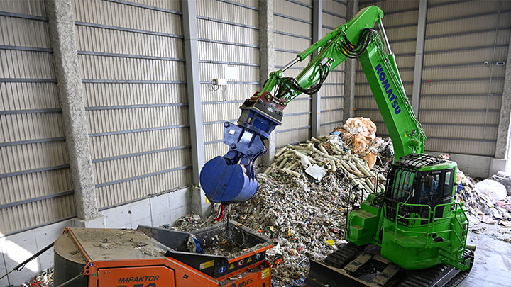 数々の先進建機が、高度化する廃棄物のリサイクルに