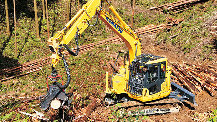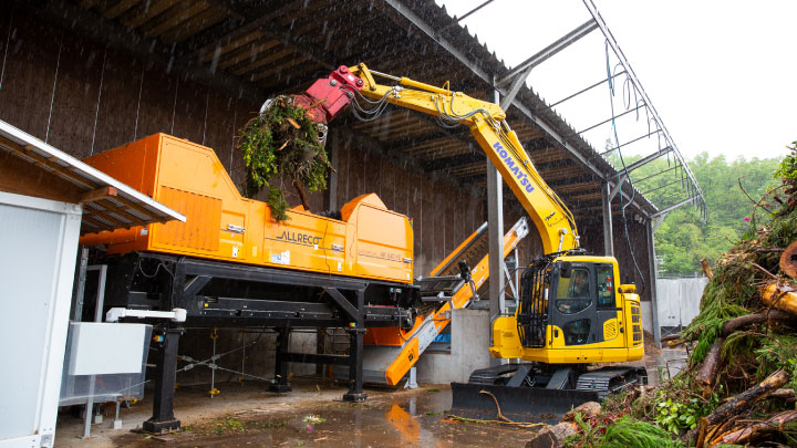 林業を中心に事業展開し、自然とともにある企業、中川工業株式会社。 木質チップの製造施設を電動化することで自然環境への負荷軽減を実現。 有線式電動油圧ショベルが業務の効率化を支え、 循環型社会の実現に貢献する。