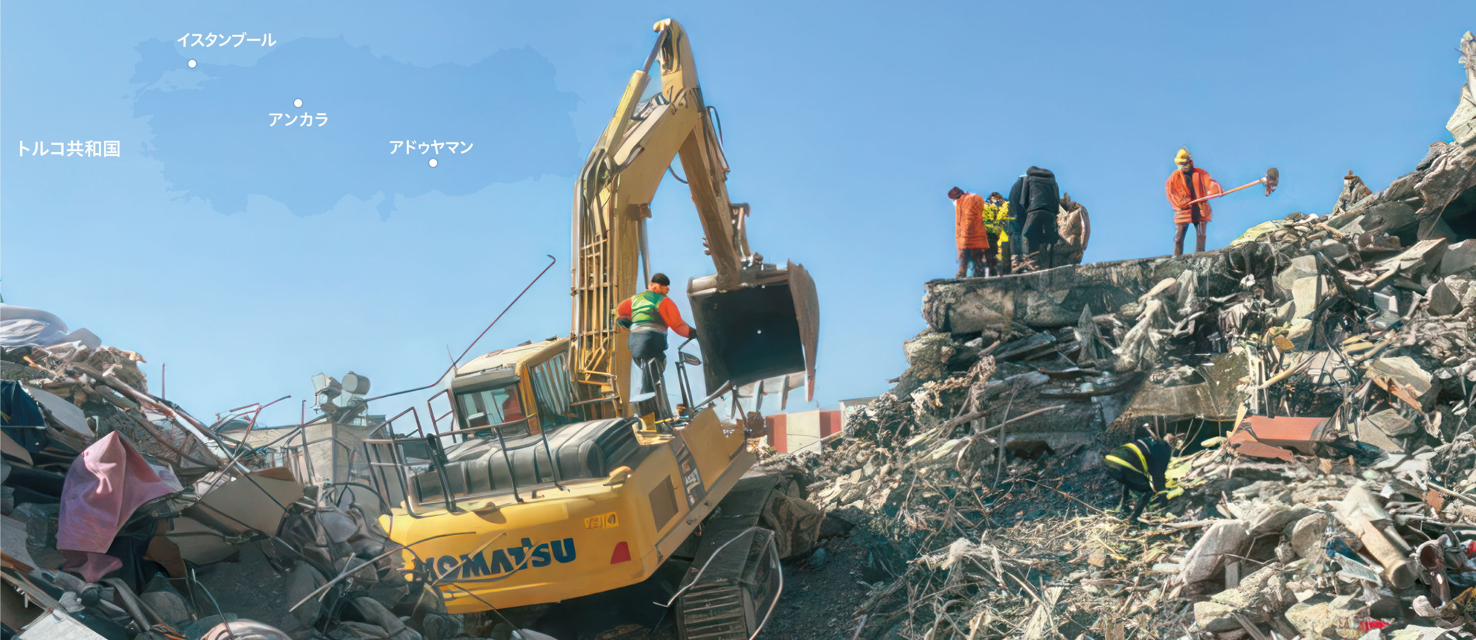 今回のトルコ・シリア地震において、コマツは被災地への救援活動に必要な建設機械の無償貸与や、寄付金による支援を行いました。世界の各地でこのような災害が発生した際、コマツは自社の事業の強みを活かし、まずは建設機械や発電機などでの支援を検討します。今後も災害発生時は、各地の代理店と連携し現地のニーズを確認しながら、自社の製品とサービスで支援を行いたいと考えています。