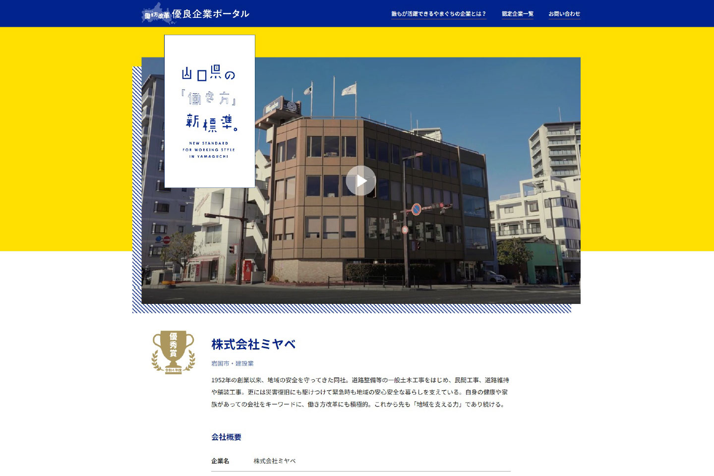 「やまぐち働き方改革優良企業ポータル」では、社員を大切にする姿勢が評価されている