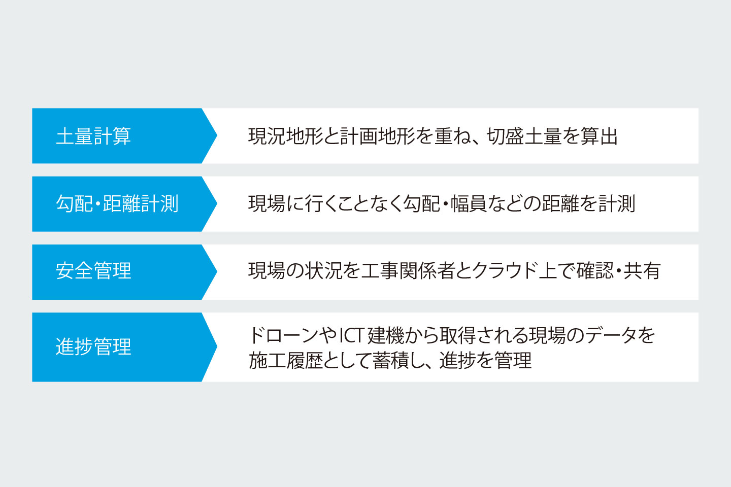 「現時点では、DXによるICT測量・施工にはまだまだ課題が残されています。こうした新しい技術を盲信せず、人の知識と実地検証を組み合わせて判断することが不可欠ですし、更にはこの技術に相応しい現場や工種を見極めることが求められます」と勢羅課長は語る。もちろん、危険な現場で活用できる側面も多々あることから、一層の技術革新に期待を寄せる。現場を熟知した厳しい視点に基づいた指摘で、EARTHBRAINの技術を進化させていくという関係式が、未来の現場を変えるDXを生み出していくに違いない。