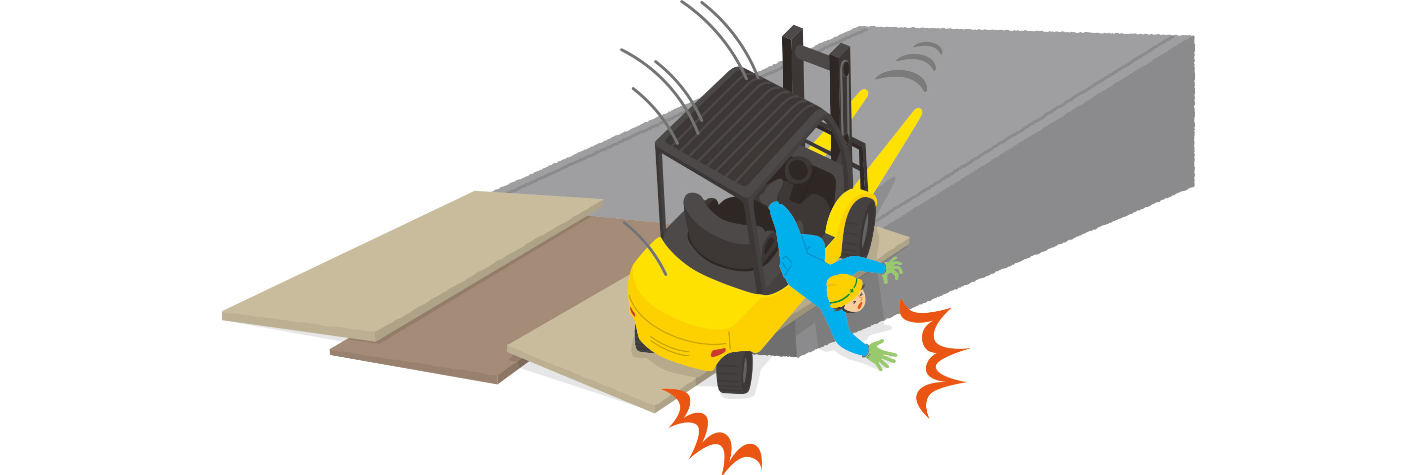 ● 事業者はスロープで滑るリスクのある場合は作業に着手する前に、関係者と打合せを行い、スロープの床面を乾燥させる(防滑塗装や十分な換気)など対策を講じる。