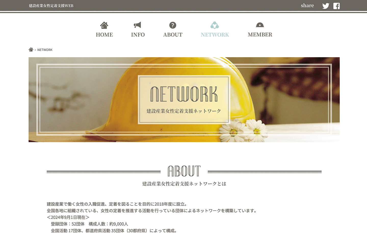 「建設産業女性定着支援ネットワーク」のウェブサイト